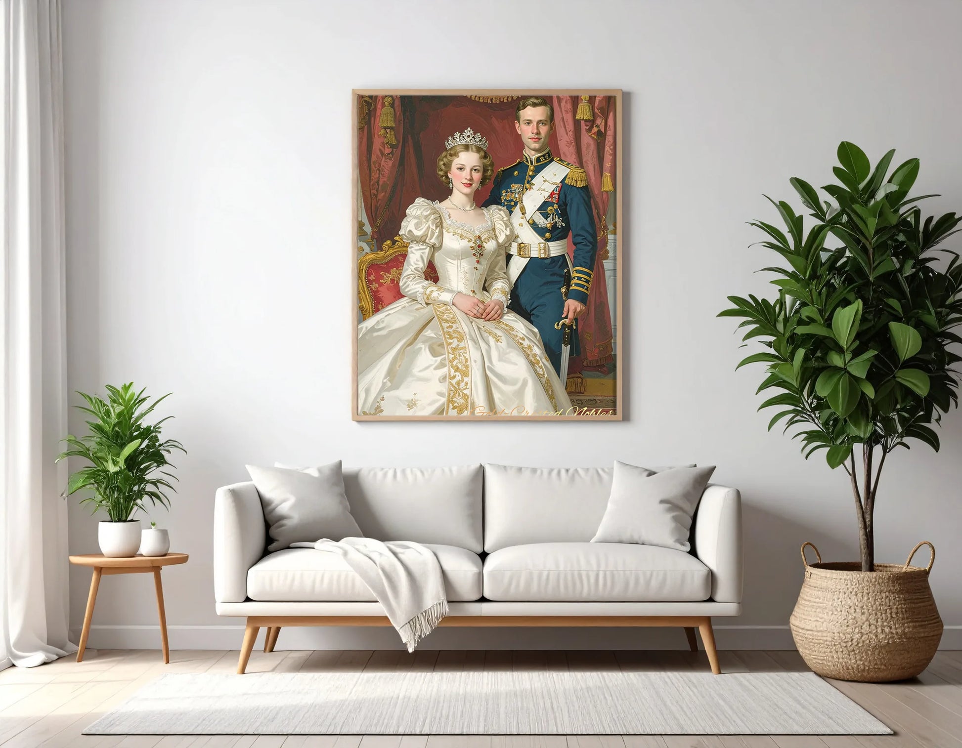 Custom Royal Couple Portrait | Gold-Crested Nobles | Personalized Wall Art Gift